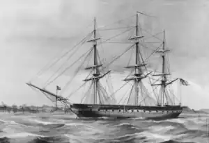 USS St. Lawrence was a Potomac-class frigate of the United States Navy. Laid down in 1826, she was completed for service in the Mexican-American war, and commissioned in 1848. Instead, she sailed to Europe to train Prussian sailors and made several other trans-Atlantic voyages. In 1851, she was reassigned to the Pacific to serve as the Pacific squadron's flagship before she was reassigned to sail to Brazil as part of the Paraguay expedition in 1856. During the American Civil War, she joined the Union Blockade and seized several blockade runners before running aground at the Battle of Hampton Roads. After the battle, she protected Washington D.C. and rejoined the blockade before she was decommissioned and reused as a storeship in 1863. She was then reused as a barracks ship before being sold of in 1875.
