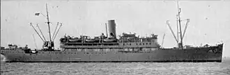United Fruit delivered Talamanca to the War Shipping Administration (WSA) on 16 December 1941 at New York under bareboat charter with WSA simultaneously delivering the ship to the Navy under sub bareboat charter.[12] The Maryland Drydock Company of Baltimore, Maryland converted Talamanca for Navy use with the Navy designating the ship AF-15 on 27 December 1941. On 28 January 1942 the Navy commissioned the ship as USS Talamanca under the command of Commander Nathan W. Bard.[3]
