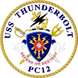 USS Thunderbolt (PC-12) is the twelfth Cyclone-class patrol ship. Thunderbolt was laid down 9 June 1994 by Bollinger Shipyards, Lockport, Louisiana, and launched 2 December 1994. She was commissioned by the United States Navy on 7 October 1995.