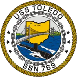 USS Toledo (SSN-769), is a United States Navy, Los Angeles-class, nuclear-powered, attack submarine and the third U.S. Naval vessel to be named for the city of Toledo, Ohio. The contract to build her was awarded to Newport News Shipbuilding and Dry Dock Company in Newport News, Virginia, on 10 June 1988, and her keel was laid down on 6 May 1991. She was launched on 28 August 1993, sponsored by Mrs. Sabra Smith, and commissioned on 24 February 1995.[3]