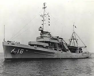 USS Tringa (ASR-16) was a Chanticleer-class submarine rescue ship of the United States Navy. She was laid down on 12 July 1945 at Savannah, Georgia, by the Savannah Machine & Foundry Co.; launched on 25 June 1946; sponsored by Mrs. Nola Dora Vassar, the mother of Curtis L. Vassar, Jr., missing in action; and commissioned on 28 January 1947.