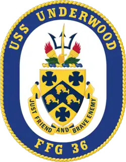 USS Underwood (FFG-36) was the twenty-seventh ship of the Oliver Hazard Perry-class of guided-missile frigates, named for Captain Gordon Waite Underwood (1910–1978).