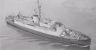 ![]() USS PC-509 around 1943, the year in which she was renamed USS Valiant (PYc-51).