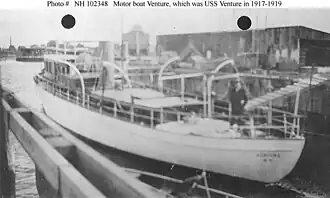 Attached to the 5th Section, 1st Naval District, Portsmouth, New Hampshire, Venture operated out of the Portsmouth Navy Yard at Kittery, Maine, through the end of World War I, conducting security patrols and performing dispatch duties.