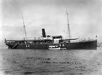 In any event, Zafiro departed Hong Kong with Dewey's squadron in April 1898 and served with it as a collier and supply ship during the Battle of Manila Bay and the ensuing Philippine campaign. The lack of documents covering her activities in 1898 and the first half of 1899 precludes any detailed narrative for that period. Presumably, she plied the waters of the Philippine Islands, carrying troops, supplies, and dispatches between points in the archipelago. Based in Cavite, Luzon, she is known to have performed such missions during the period from July 1899 to June 1904. Those movements—in support of the United States Army's suppression of the Philippine insurrection and campaigns against the Moslem Moro tribesmen—took her to a host of exotic places and the length and breadth of the islands.