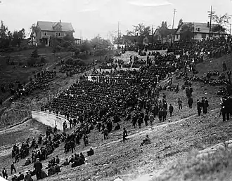 Worker divisions were widespread, with native and immigrant workers often at odds as employers utilized propaganda to exploit racial tensions among some white native workers.[17] Riots erupted in several cities, including the Cleveland May Day Riot, where tensions escalated due to a series of strikes leading to conflicts between unionists and leftists, as well as anti-communist and anti-unionist residents.[19]