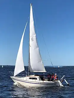 For sailing the boat is equipped with a mainsheet traveler mounted on the bridge deck, genoa tracks, an internally-mounted outhaul, topping lift and reefing system. There are two cockpit winches for the jib. The boat may be fitted with a spinnaker for downwind sailing.[9]
