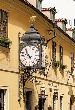 U Fleků is a pub and microbrewery in Prague, Czech Republic. It occupies buildings around a central courtyard at Křemencova 11 in New Town, (Praha 1), not far from the National Theatre. The front facade of the building has an old, highly decorated clock above its door.