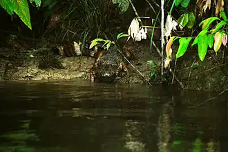 ![]() Smooth-fronted caiman (Paleosuchus trigonatus) in the reserve | |