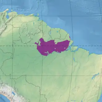 The Uatuma–Trombetas moist forests ecoregion is in the north of Brazil in parts of the states of Roraima, Amazonas and Amapá to the north of the Amazon River. Small areas of the ecoregion cross the Brazilian border into Guyana and Suriname. It has an area of 47,319,082 hectares (116,928,000 acres).[1] The ecoregion covers the area to the north of the Amazon River from close to the Atlantic coast to the Rio Negro and the Branco River. In the north to extends to the mountains along the border between Brazil and the Guianas and Suriname. On the 1993 Brazilian Institute of Geography and Statistics map the Brazilian part is shown as "lowland ombrophilous dense forests", "submontane ombrophilous dense forests" and "ombrophilous forest – savanna transition".[2]
