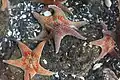 The feature display animal is the Giant Pacific Octopus, which at this northern latitude ranges to near the surface. Other animals central to the displays are various rockfish species, crabs, bivalves, feather duster worms, bay pipefish, sea anemones, and the sea pen. Interesting species sometimes displayed include the spotted ratfish, Humboldt squid, basket star, spot prawn, and red octopus. In addition, because the aquarium continuously pumps raw sea water through its exhibits, planktonic larvae of all sorts settle out in the exhibits, providing an ever-changing challenge of interesting discoveries. Of particular abundance are the opalescent nudibranch and sand-dwelling shellfish species like clam larvae, which grow into juvenile clams over the summer and are then returned to the beach.
