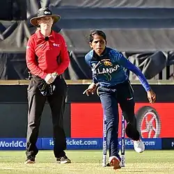 ![]() Prabodhani bowling for Sri Lanka during the 2020 ICC Women's T20 World Cup | ||||||||||||||||||||||||||||||||||||||||