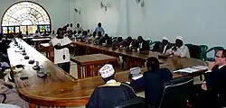 The first UMSC constitution was drafted in 1972 at a religious conference organised by Ugandan dictator Idi Amin. This constitution stated that the organisation would be led by a Supreme Council of eleven representatives from Uganda's 21 civil administrative districts. Any male Muslim in Uganda would be eligible to run or vote for this role. This council would serve for five-year terms and was mandated to meet at least once a year. At their first meeting, the council would elect the Chief Kadhi (later called Mufti)[2] and his deputy, the Chairman of the Executive Council, the Secretary General, and two administrative bodies that would serve for a five-year term: the Executive Council and the College of Sheikhs.[3]