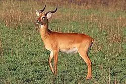 The Ugandan kob (Kobus kob thomasi) is a subspecies of the kob, a type of antelope. It is found in sub-Saharan Africa in South Sudan, Uganda and the Democratic Republic of the Congo. The Ugandan kob is normally reddish-brown, differentiating it from other kob subspecies.