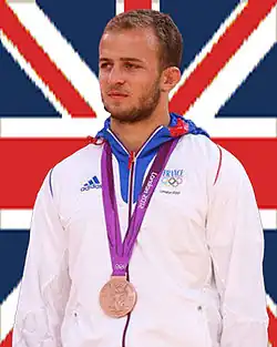 Ugo Legrand (born 22 January 1989, Mont-Saint-Aignan) is a judoka from France.[1] In 2012, he won bronze at the 2012 Summer Olympics in the -73 kg class. He won his first match against Tomasz Adamiec, and his second against Hussein Hafiz. After losing his quarterfinal again Dex Elmont, he was entered into the repechage. He won his first repechage match against Rasul Boqiev before winning his bronze medal match against Wang Ki-Chun.[1]