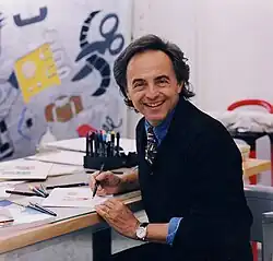 His career as an artist started in the 1960s. His work was influenced by Pop Art, which was becoming popular in Italy in those years, conceptual art, Arte Povera and Fluxus. He had a chance to see and appreciate closely these movements during a trip to the United States in 1967. He would then continue to regularly visit the States, where he would spend long periods of time, especially during the 1980s.[2][3] Irony and transgression became key element in Nespolo's art and characterised his work for many years to come.[4] Since 2010 he has been member of the Honour Committee of "Immagine & Poesia", an artistic literary movement founded in Turin, with the patronage of Aeronwy Thomas (Dylan Thomas's daughter).[5] In 2016 he signed the pptArt Manifesto,[6][7] an international art movement that promote many notable initiatives like the Corporate Art Awards.
