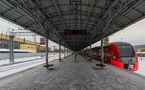 From January 2017, passengers may make out-of-station transfers to Volgogradsky Prospekt station on the Metro's Tagansko-Krasnopresnenskaya Line.[2] Initially a free transfer was not organized due to the considerable remoteness of these two stations. This is the longest transfer between the MCC and Metro line in the entire system, the average transit time is nearly 12 minutes.