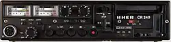 Since 1971 Uher produced very small HiFi cassette machines which can be described as compact Report series: the CR 124, 1974 CR 210, since 1977 the CR 240 with Dolby B.[1]