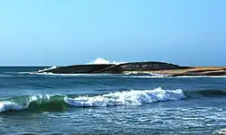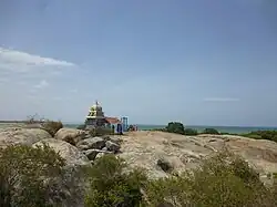 Okanda Beach is about 100 m southwards of the main shrine of Murugan and there was a boat - like rock is situated in the shore which i.s already mentioned above. Another hillock near the beach called as "Kallu vacha Malai" (கல்லு வச்ச மலை - litt. "Stone placing mountain") is another place of worship where devotees place a "kallu" - stone with prayers for fulfilling their wishes. the naturally formed foot - like excavations are believed to belongs to Murugan and Valli.