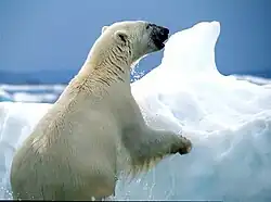 Polar bear (Ursus maritimus) stepping on ice flow -