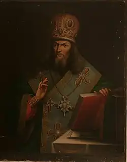 Following the transfer of the Cossack Hetmanate under the sovereignty of the Tsardom of Russia in 1654, the Kyivan metropolis in 1686[44][45] was transferred by the Patriarch Dionysius IV under the jurisdiction of the Moscow Patriarchate, following the election of Gedeon Svyatopolk-Chetvertynsky as the Metropolitan of Kyiv, Galicia, and all Russia with the help of the Hetman of Zaporizhian Host Ivan Samoylovych. In late 2018, the Ecumenical Patriarchate of Constantinople indicated that information about that it transferred jurisdiction over Ukraine to the Moscow Patriarchate was inaccurate as Constantinople temporarily provided Moscow with stewardship over the Ukrainian church.[46] The Russian Orthodox Church immediately rejected that statement and called for further discussion and revision of historical archives.[47]