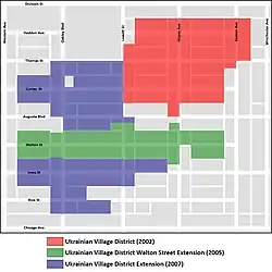- ^ a b Reports of Committees: Ukrainian Village District Extension, City Clerk's Office – City of Chicago, April 11, 2007, pp. 102605–102648