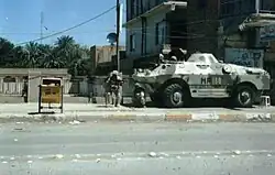 The Ukrainian contingent in Iraq, accompanied by 20 other coalition troops as well as British and American mercenaries, was drawn into its first major battle in early April 2004, when they faced off against the Mahdi army of Shia cleric Muqtada al-Sadr in the city of Kut. In the resulting clashes, Ukrainian soldiers lost one soldier, Ruslan Androshchuk, to an anti-tank grenade launcher, and six others were wounded, while fighting near Kut's bridge across the Tigris river.[15] Facing resistance from the Mahdi army, Ukrainian forces withdrew from the city on 7 April 2004.[16] The retreat of the Ukrainian contingent, against the orders of the US military commander in Iraq, has privately infuriated coalition leaders.[2] Sadr's militia have proved to be a far stronger military force than the coalition had believed. By April 8, they were effectively in control of Kut and Kufa. Sadr, meanwhile, was surrounded by his followers at the holy city of Najaf.[2] According to data provided by American intelligence, Ukrainian soldiers killed 180–200 insurgents in the first day of the battle.[1]