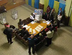 The first polling places to open were at the Ukrainian embassies in Australia and Japan. Election districts were open from 7:00AM until 10:00PM local time. According to the Central Election Commission of Ukraine 63.22% of registered voters cast ballots.[22] This easily exceeded the 50% participation required by Ukrainian law to make the election valid.