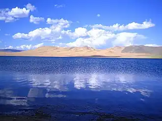 the area is a cold semi-desert. A number of rare waterbirds have been noted at the site, including the endangered White-headed duck (Oxyura leucocephala), the vulnerable Great bustard (Otis tarda), and the vulnerable White-throated bush chat (Saxicola insignis).[2]