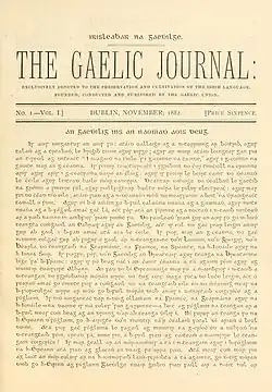 The Union, a society established for the cultivation and preservation of the Irish Language, later developed into the Gaelic League. The Gaelic Union established the Gaelic Journal which remained in print until and played an important part in the revival.