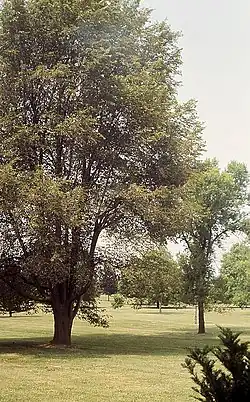![]() Ulmus pumila 'Dropmore' (right), Ulmus 'Fremont' (U. pumila x U. rubra) (left), 1987, Madison Arboretum, University of Wisconsin | |