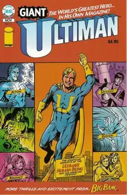 Ultiman is a fictional character published by Big Bang Comics. First appearing in Big Bang Comics #1 (Spring 1994), he was created by Gary Carlson and drawn by his partner Chris Ecker, among others. There are two existing versions of Ultiman. Metafictionally, the first is from the Golden Age of comics on Earth-B, and the second from the Silver Age of comics on Earth-A. Ultiman has proven to be the most popular of all Big Bang Comics heroes.