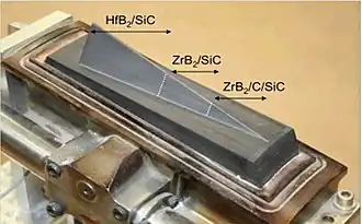 - ^ Zhao, Yuan; et al. (2009). "Effect of holding time and pressure on properties of ZrB2-SiC composite fabricated by the spark plasma sintering reactive synthesis method". International Journal of Refractory Metals and Hard Materials. 27: 177–180. doi:10.1016/j.ijrmhm.2008.02.003.