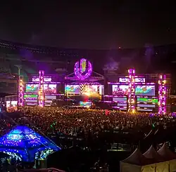 2015 marked Ultra Korea's fourth event and was held at Seoul's Olympic Stadium once again and took place during 12–13 June 2015.[16] This edition replaced the Mega Outdoor Stage with a new stage entitled the Magic Beach Stage.[17] Artists on the bill for Ultra Korea 2015 were Hardwell, Skrillex, Nicky Romero, DVBBS, Justin Oh, Porter Robinson, 2ManyDJs, Kennedy Jones, Los de La Vega, Protoculture, David Guetta, Alesso, Knife Party, Galantis, Snoop Dogg, Lil Jon, Nic Fanciulli, Pirupa, and many more.[18] Ultra Korea drew 110,000 fans from all over to the Olympic Stadium in 2015.[19]