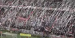 Ultras Spartak are well known for their choreography,[20] it takes all night to prepare an all stand choreo, sometimes even three days. It is produced by volunteers in their free time.[21]