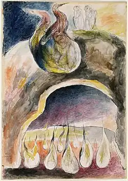 Tennyson's character, however, is not the lover of public affairs seen in Homer's poems. Rather, "Ulisse" from Dante's Inferno is Tennyson's main source for the character,[21] which has an important effect on the poem's interpretation. Ulisse recalls his voyage in the Inferno's 26th canto, in which he is condemned to the Eighth Circle of false counsellors for misusing his gift of reason. Dante treats Ulisse, with his "zeal …/ T'explore the world", as an evil counsellor who lusts for adventure at the expense of his family and his duties in Ithaca.[22] Tennyson projects this zeal into Ulysses' unquenched desire for knowledge:[23]