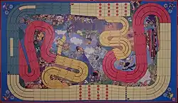 Um Reifenbreite is a bicycle racing themed board game for two to four players. It was invented by Rob Bontenbal.[1]