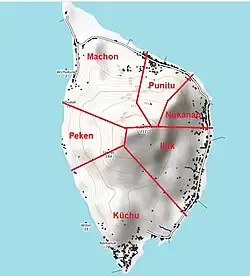 Traditionally and before European contact, Uman had been subdivided into six districts. These are listed clockwise, starting in the North:[1]