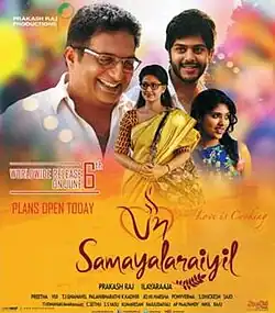 Un Samayal Arayil in Tamil (transl. In your kitchen), Oggarane in Kannada (transl. Tempering) and Ulavacharu Biryani in Telugu, is a 2014 Indian romantic comedy film directed by Prakash Raj.[2] A remake of Aashiq Abu's 2011 Malayalam film Salt N' Pepper, the film is simultaneously shot in three languages.[3] It stars Prakash Raj alongside Sneha, Urvashi, Tejus and Samyukta Hornad.[4] The film features the original score and soundtrack by Ilaiyaraja. The regular shoot commenced from 26 September at Mysore.[5]