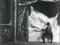 Uncle Josh at the Moving Picture Show is a 1902 American short silent comedy film directed by Edwin S. Porter, featuring a naive spectator trying to interact with films projected onto a screen. It is an almost identical remake of a British 1901 film directed by Robert W. Paul, The Countryman and the Cinematograph.[1] Paul's film was the first to feature a film shown within a film.[2]