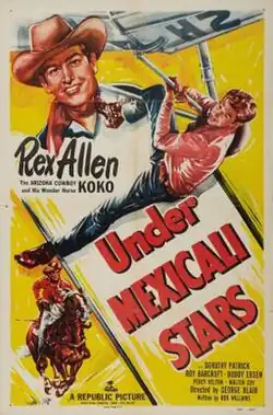 Under Mexicali Stars is a 1950 American Western film directed by George Blair, written by Robert Creighton Williams and starring Rex Allen, Dorothy Patrick, Roy Barcroft, Buddy Ebsen, Percy Helton and Walter Coy. It was released on November 20, 1950, by Republic Pictures.[1][2][3]