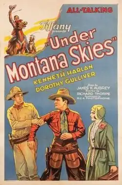 Under Montana Skies is a 1930 American pre-Code western film directed by Richard Thorpe and starring Kenneth Harlan, Slim Summerville and Dorothy Gulliver.[1] It was produced and distributed by Tiffany Pictures, one of the leading independent studios in Hollywood.