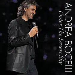 Under the Desert Sky is a live album and DVD of a classical - pop concert by classical Italian tenor Andrea Bocelli. The concert was performed on a specially built floating stage at Lake Las Vegas Resort (near Las Vegas, Nevada) and taped for American television network PBS. It mostly featured songs from Bocelli's previous album, Amore. The package was released on 7 November 2006. It debuted and peaked on the U.S. Billboard 200 at number 11.[1][2]