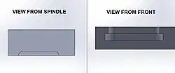In milling the spindle is where a cutting tool is mounted. In some situations material must be cut from a direction where the feature can not be seen from the perspective of the spindle and requires special tooling to reach behind the visible material.