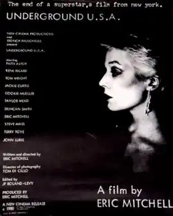 Underground U.S.A. is a 1980 American No Wave underground film directed by Eric Mitchell starring Patti Astor, Rene Ricard, Jackie Curtis, Cookie Mueller, Steve Mass, Tom Wright, Ronnie Cutrone, John Lurie, David Armstrong, and Taylor Mead.[1] Tom DiCillo was the director of photography. Set design was by sculptor Jedd Garet.[2] Future director Jim Jarmusch was the sound recordist.[3] The film, made for $25,000 with the assistance of Colab's No wave cinema project, was shot in the Mudd Club (at one point owner Steve Mass is held hostage there) and Lower East Side apartment interiors.[4] Underground U.S.A. was Eric Mitchell's third no wave film and the first to be shot in 16 mm film.