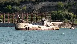 Bentos-300 (Bentos minus 300) was a maneuverable Soviet submersible with a diver lockout facility that could be stationed at the seabed. It was able to spend two weeks underwater at a maximum depth of 300m with about 25 people on board. Although announced in 1966, it had its first deployment in 1977.[5] [1] There were two vessels in the project. After Bentos-300 sank in the Russian Black Sea port of Novorossiisk in 1992, several attempts to recover it failed. In November 2011 it was cut up and recovered for scrap in the following six months.