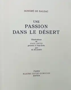 Une passion dans le désert (English "A Passion in the Desert") is a short story by Honoré de Balzac. It was published in 1830 and is one of the Scènes de la vie militaire of La Comédie humaine.[1]