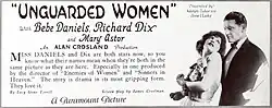Unguarded Women is a 1924 American silent drama film directed by Alan Crosland and starring Bebe Daniels. It was produced by Famous Players–Lasky and released by Paramount Pictures.[1][2]