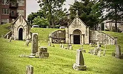 Union Cemetery is the oldest surviving public cemetery in Kansas City, Missouri.[3][4][5] It was founded on November 9, 1857, as the private shareholder-owned corporation, Union Cemetery Assembly. As a commercial enterprise remote from city limits, its 49 acres (20 ha) became a well-funded and remarkably landscaped destination by 1873.