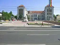Union Monument (Romanian: Monumentul Unirii), a monument of white marble in the Romanian city of Iaşi, was designed by Princess Olga Sturdza and unveiled in 1927 at the base of Carol Boulevard. It consists of a central piece (the Motherland) and four smaller ones representing the historic provinces of Transylvania, Bessarabia and Bukovina (incorporated into Romania at the end of World War I) and the Romanian diaspora. Demolished in 1947 as the Romanian Communist Party was tightening its grip on the country, it was rebuilt in 1999, this time being placed in Piaţa Naţiunii, in front of the Grigore T. Popa University of Medicine and Pharmacy.